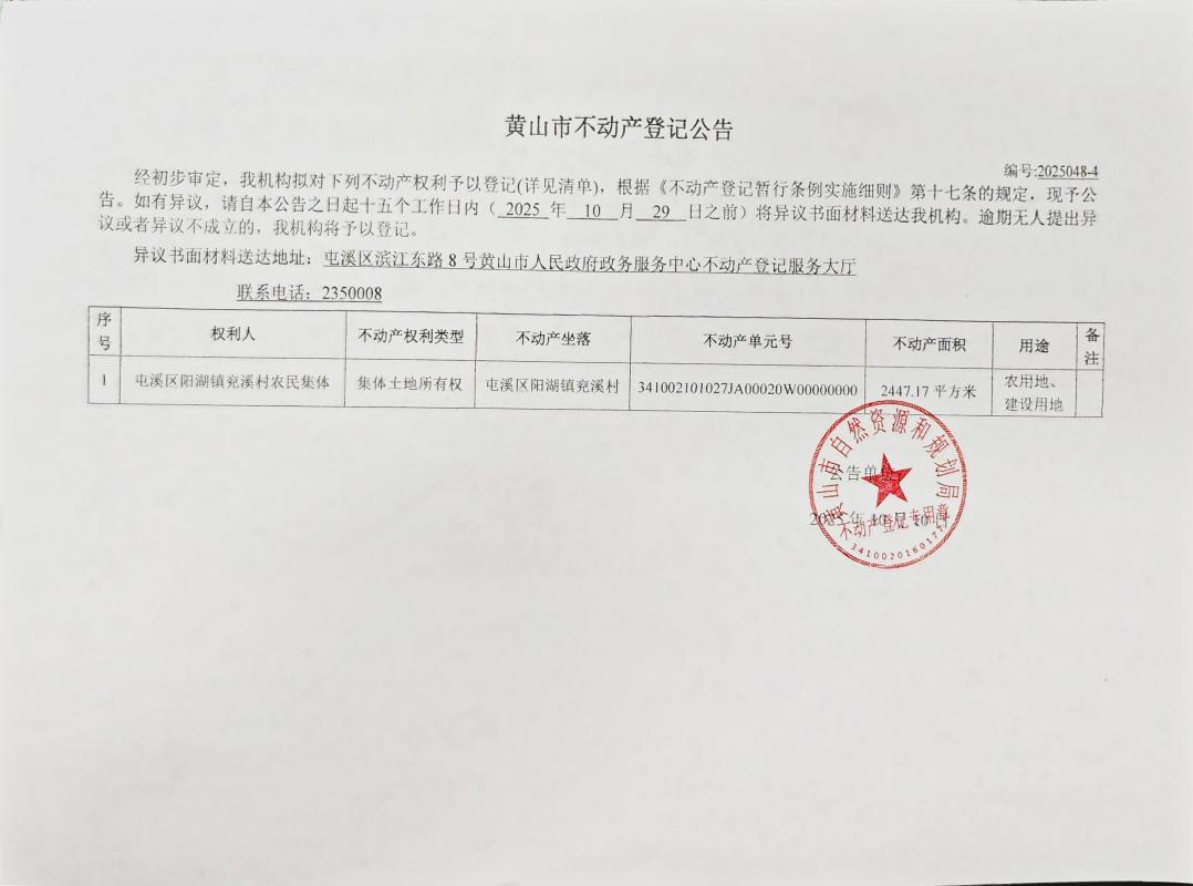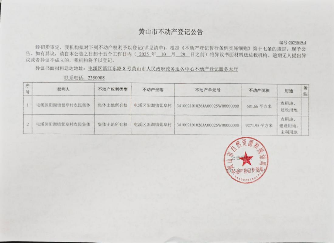 黄山市不动产登记公告(2025048-4、2025049-4)
