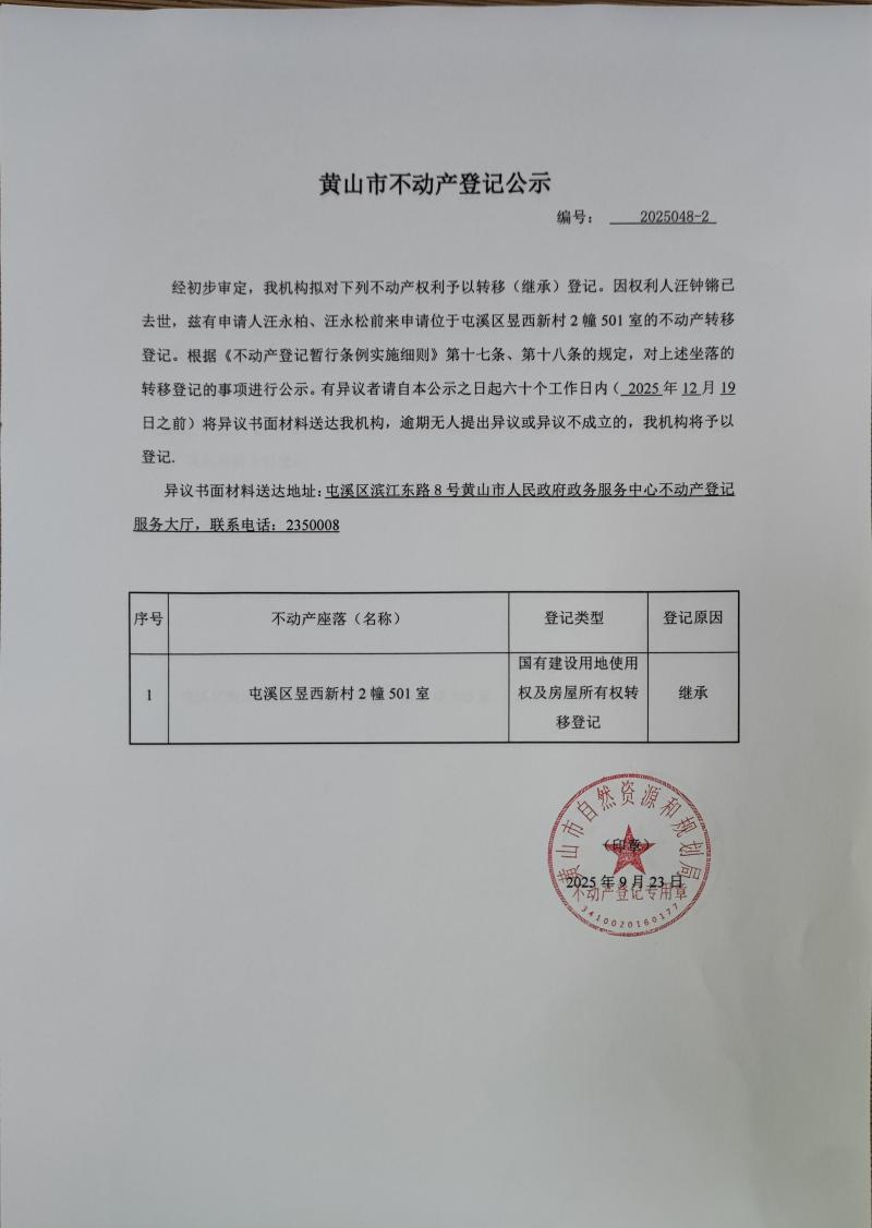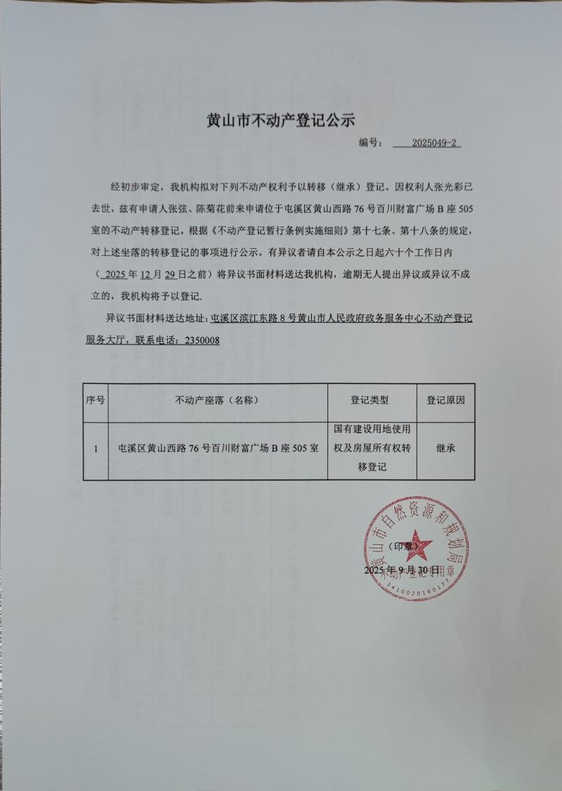 黄山市不动产登记公示(2025048-2、2025049-2)