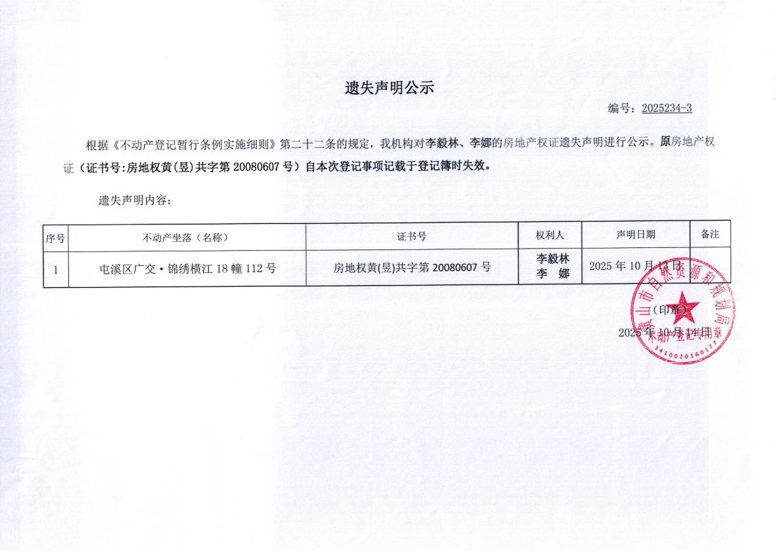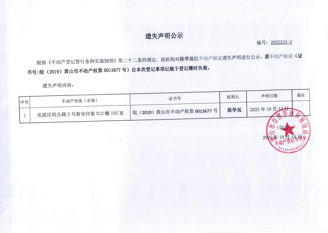 遗失声明公示(2025232-3、2025233-3、2025234-3)