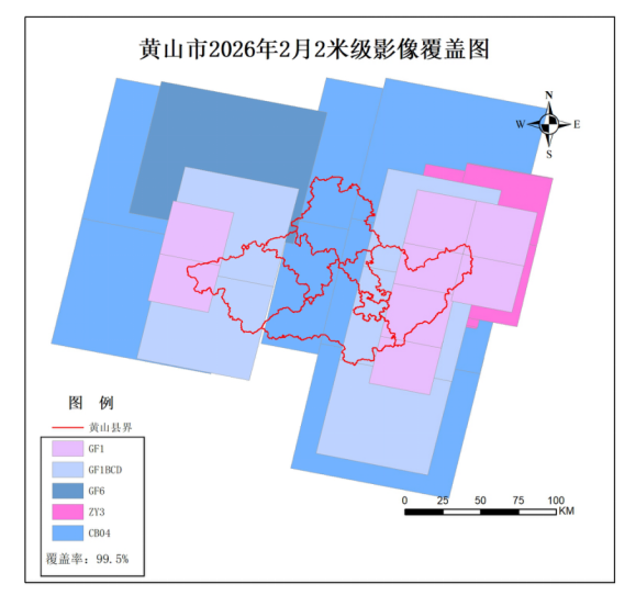 2026年2月,黄山市卫星应用技术中心新增卫星影像107景,接收情况一览表如下: