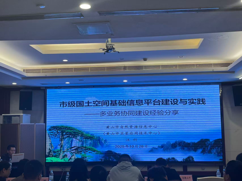 根据会议安排,黄山市自然资源信息中心(卫星中心)受邀分享实践经验。以《市级国土空间基础信息平台建设与实践——多业务协同建设经验》为题,系统介绍了黄山市通过构建统一国土空间基础信息平台,实现多业务协同融合的经验,一方面支撑自然资源领域高质量发展,另一方面依托“天地图”平台赋能数字政府建设与社会经济发展。在自然资源部推进“一张图”建设与“四个融合”的背景下,地理底图建设需强化与业务协同融合,实现双向赋能与合力凝聚。